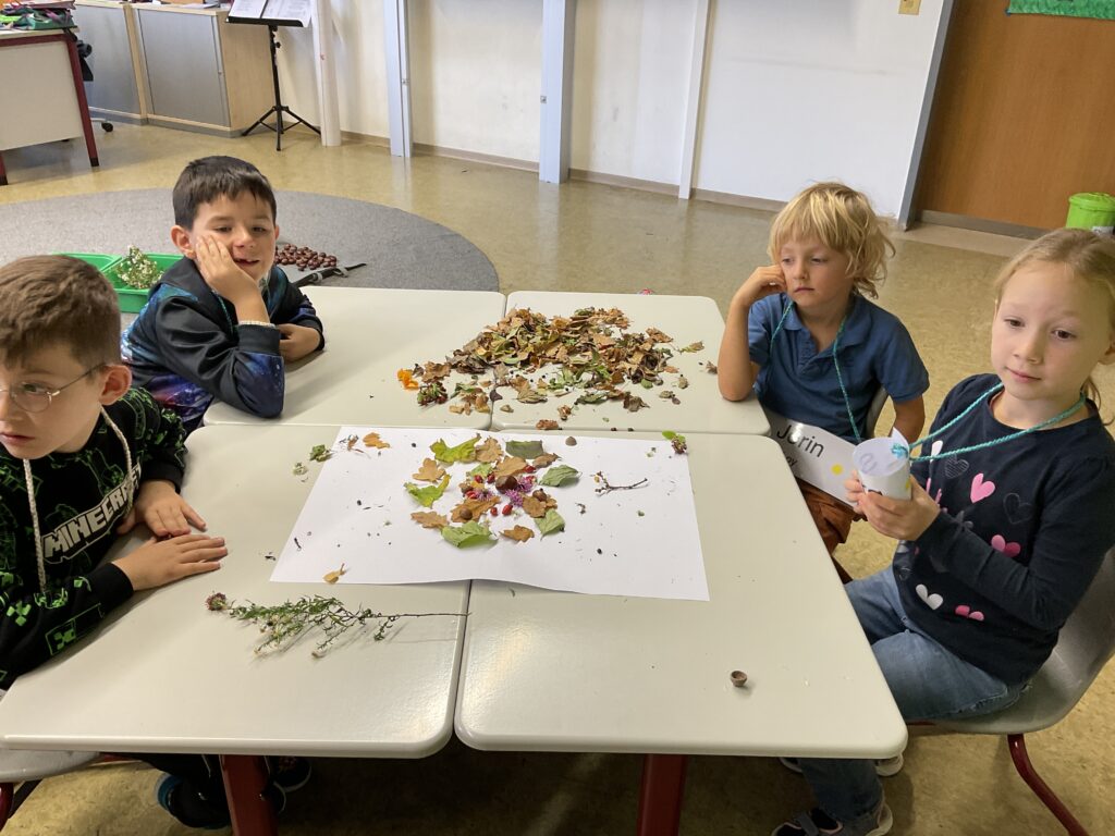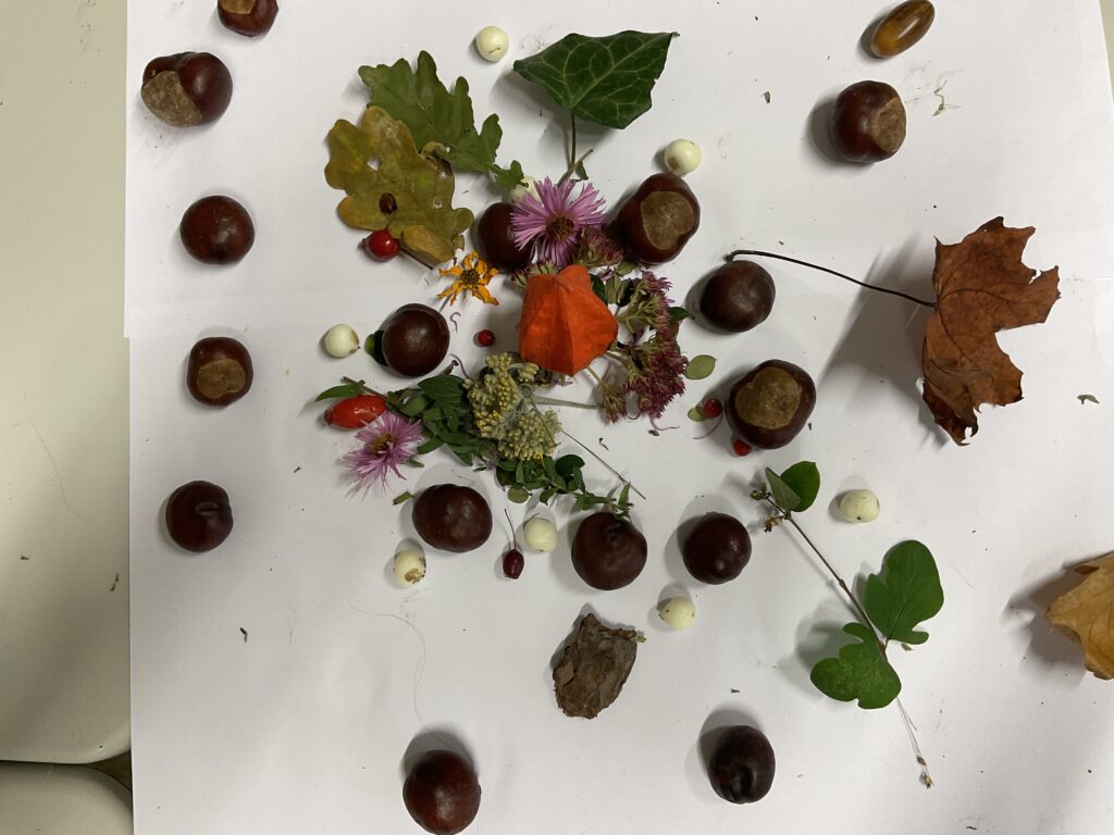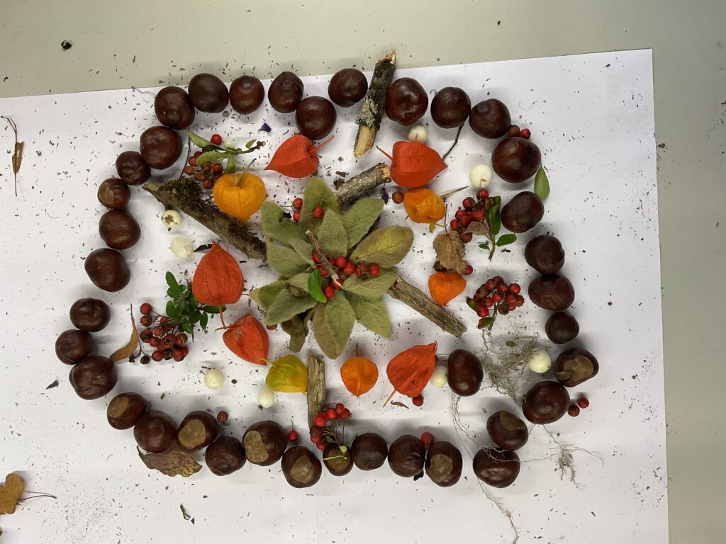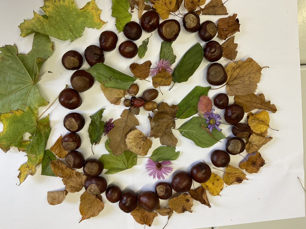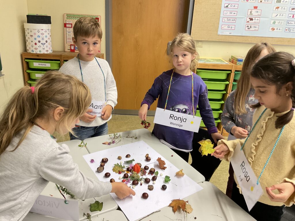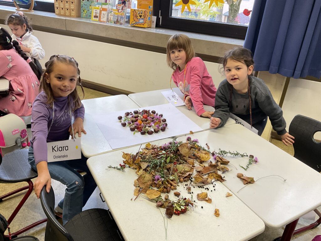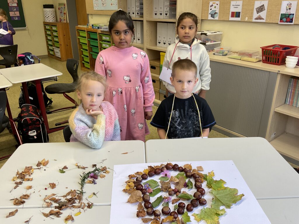 „Mandalas im Herbst“ hieß das aktuelle Thema in der Ethikstunde. Die Kinder lernten zunächst, dass ein Mandala immer von der Mitte ausgeht und dann gleichmäßig ausstrahlt. Nachdem auf dem Schulgelände genügend Naturmaterialien gesammelt worden waren, konnten farbenfrohe Kunstwerke gestaltet werden.