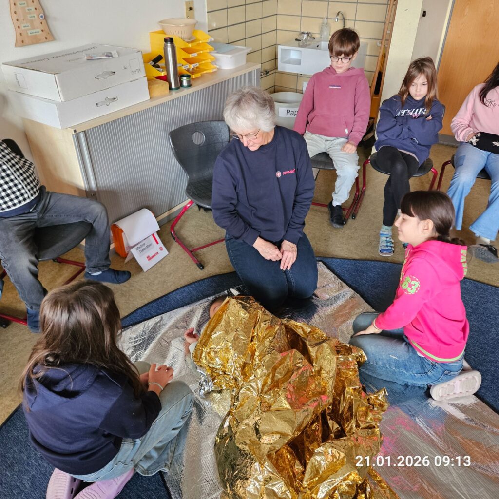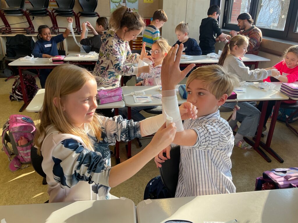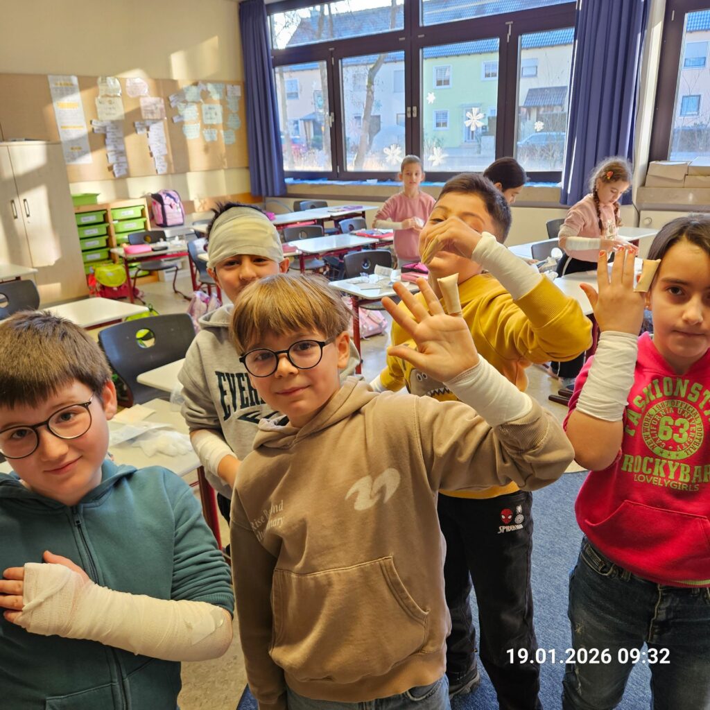 Unter der Anleitung von Martina Dobler-Maier, Ausbilderin bei den Johannitern in Ostbayern, erwarben die Kinder an zwei Schulvormittagen im Januar grundlegende Kenntnisse, um Notfälle und Verletzungen nicht nur an sich selbst, sondern auch an ihren Mitmenschen zu erkennen und zu versorgen. Die Kinder übten, Verbände und Fingerkuppenpflaster richtig anzulegen und einen Notruf korrekt abzusetzen. Sie erfuhren auch, wie man sich verhalten muss, wenn man eine verletzte Person auffindet. Ist diese nicht bei Bewusstsein, so bringt man sie am besten in die sogenannte „Stabile Seitenlage“. Auch das wurde gemeinsam geübt. Jedes Kind erhielt zum Abschluss eine „Ersthelfer von Morgen“-Urkunde.