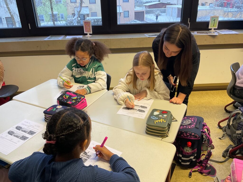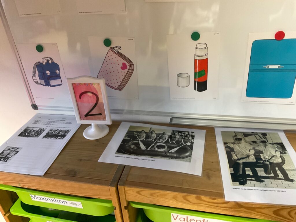 Im Rahmen des Heimat- und Sachunterrichts begaben sich die Kinder der 3b mit Studenten des Lehrstuhls für Geschichtsdidaktik auf eine Zeitreise und beschäftigten sich mit dem Thema „Feuerwehr vor 100 Jahren“. Gemeinsam wurde erarbeitet, welche Ausrüstung und Löschgeräte die Feuerwehr damals hatte und wie Brände gelöscht wurden. Anhand von Bildern und kurzen Texten verglichen die Kinder abschließend die Feuerwehr von früher mit der heutigen Zeit.