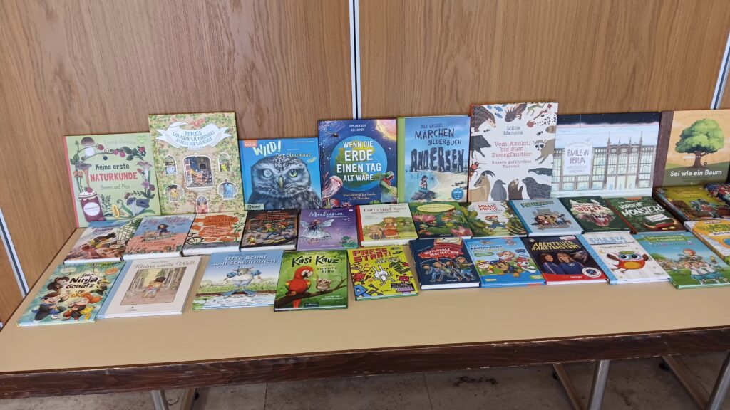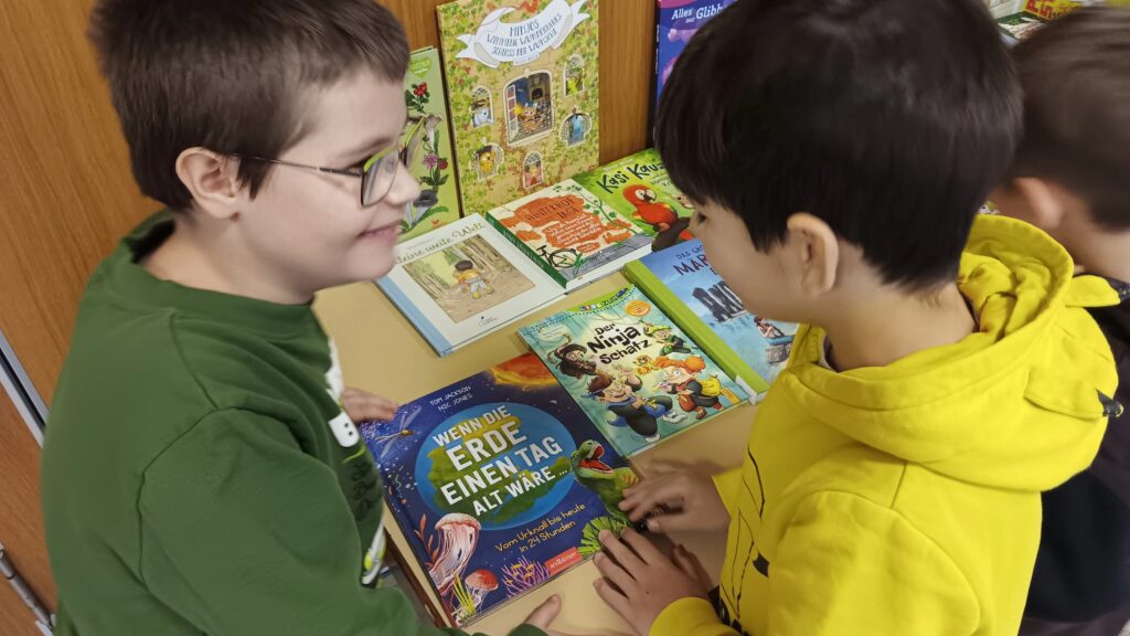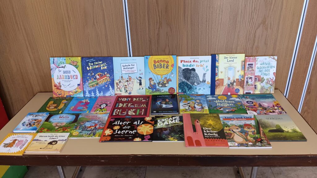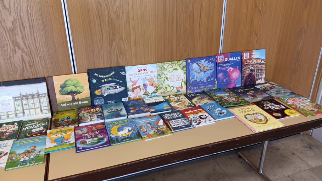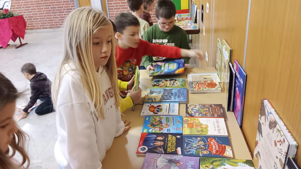 In ein Paradies für Bücherwürmer und Leseratten verwandelte sich die Aula der Grundschule Im November 2025. Hier fand nämlich eine große Bücherausstellung mit 80 neuen Buchtiteln statt. Nach Herzenslust konnten die Kinder schmökern und spannende Geschichten sowie informative Sachtexte lesen.