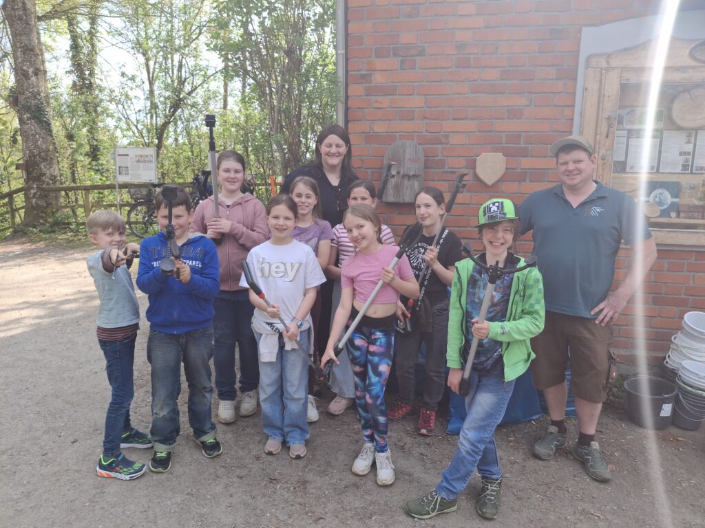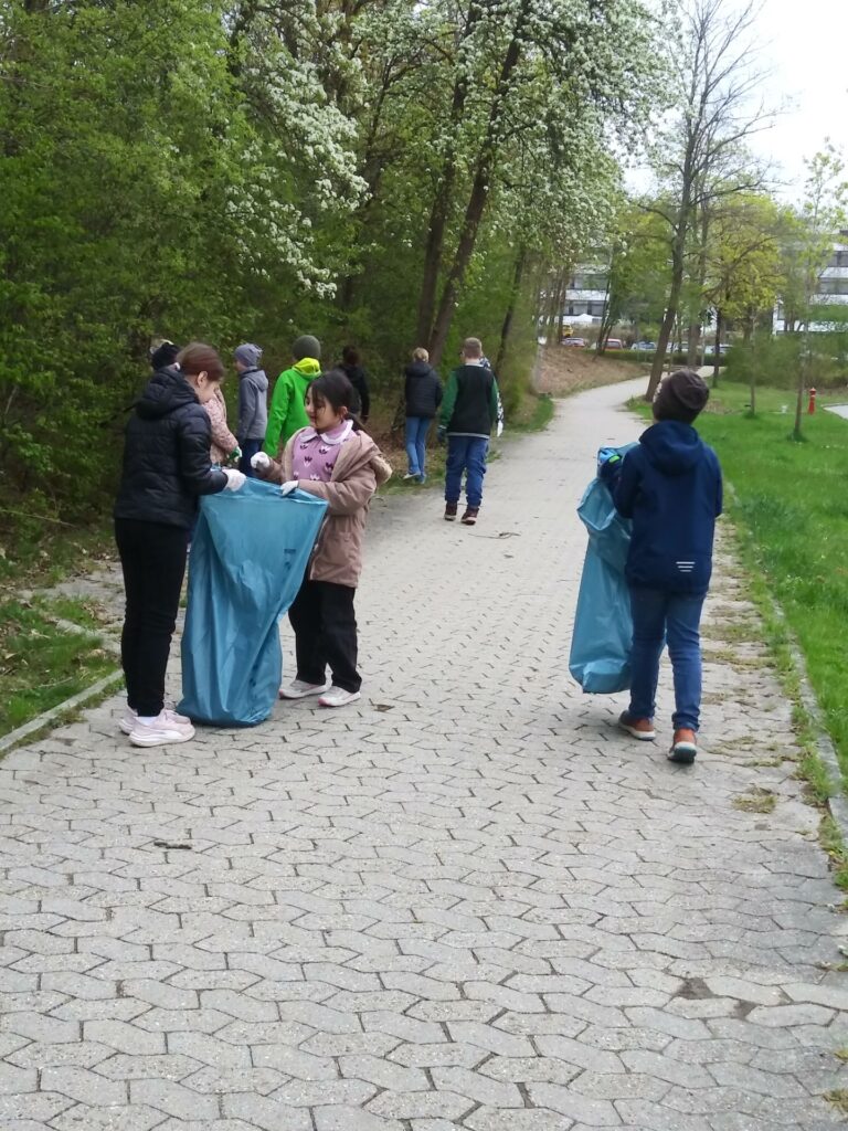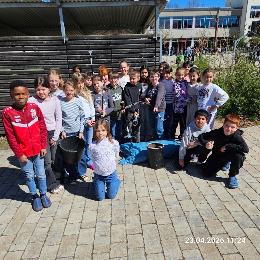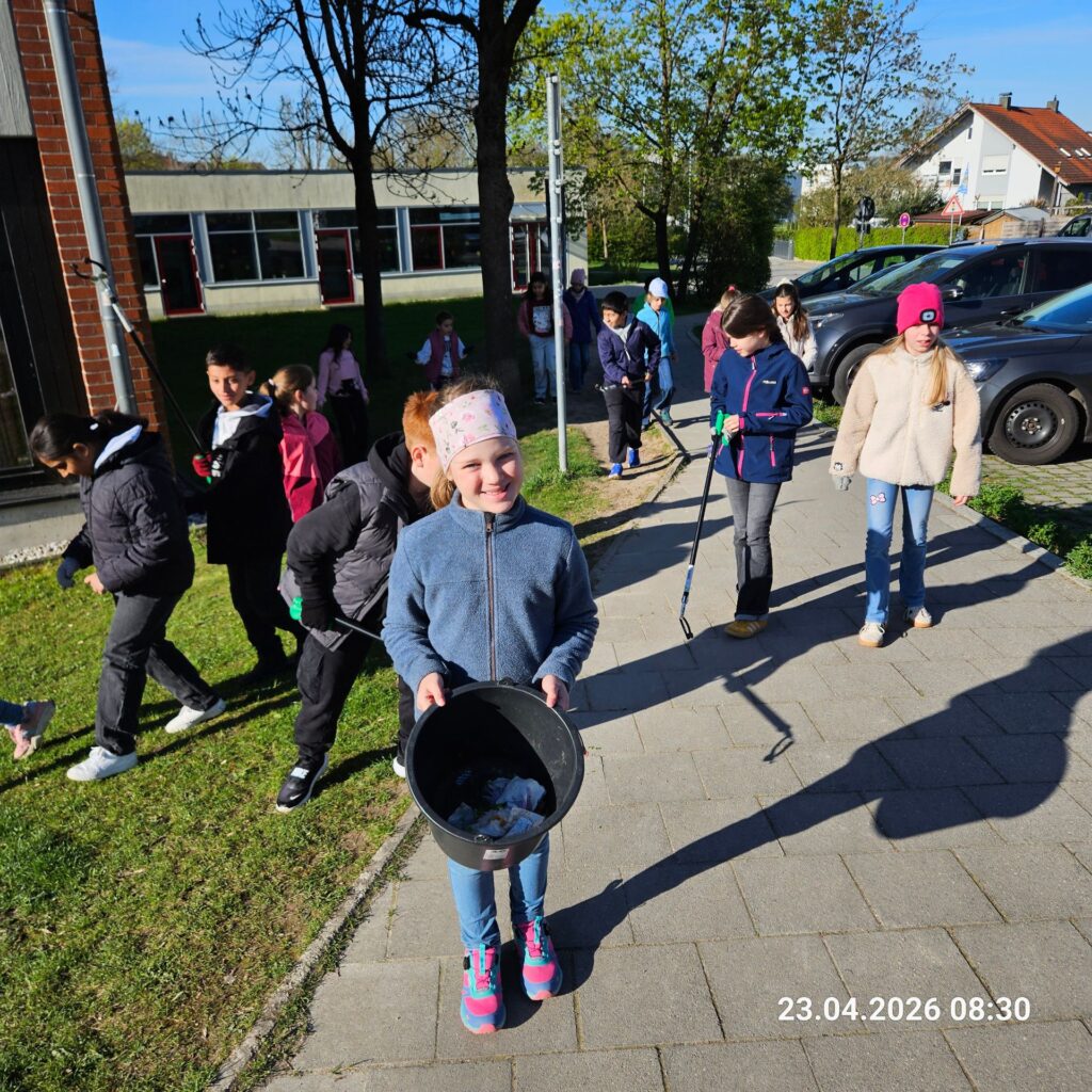 Zehn Schülerinnen und Schüler der zweiten und vierten Klassen unterstützen am Samstag mit der Lehrerin Christine Schneider die Aktion „Ramma Damma“ des Bergvereins. Hierbei wurde am Schlossberg zunächst Müll gesammelt. Es war schön zu sehen, dass achtlos weggeworfener Müll in der Natur spürbar weniger wird. Vielleicht zeigen die vielen aufgestellten Mülleimer endlich ihre Wirkung! Aber ganz ohne Funde gings dann natürlich auch nicht: alte Glasflaschen, Zäune und so manches Kuriose tauchten unter den Blättern und in den Büschen auf. Nach der Aktion erstrahlten der Turmplatz und die Grotte für die Maiandachten in neuem Glanz. Zum Abschluss wurden noch 140 neue Bäume gepflanzt, ein Trockenbiotop aus Ästen und Stämmen sowie ein Insektenhotel gebaut. Diese Aktion wurde am Montag von der Klasse 3b mit ihrer Lehrerin Sybille Dirscherl fortgesetzt und der Bereich zwischen Schule und Stadion vom Müll gereinigt. Auch die Klasse 3a hat sich am Donnerstag noch an der Müllsammelaktion in Regenstauf beteiligt. Der größte Anteil des gesammelten Mülls bestand aus Kunststoffen von Verpackungsmaterialien. Auch Flaschen, Zigarettenkippen und Metallteile wurden von den Schülerinnen und Schülern am Wegrand entdeckt und landeten im Müllbeutel. Wir sind überzeugt, dass durch diese Aktion in Zukunft mehr auf die Natur geachtet wird und sich viele Menschen etwas umweltbewusster verhalten. Eine sinnvolle und tolle Aktion, die trotz Anstrengung allen fleißigen Helfern großen Spaß gemacht hat.
