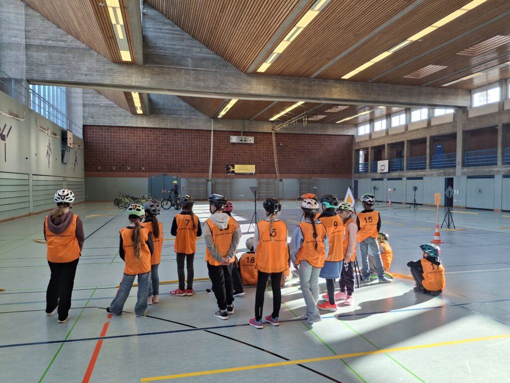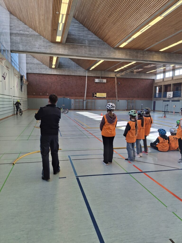 Zusammen mit der Polizei bereiteten sich die 4. Klässler auf die Teilnahme im Straßenverkehr vor. Sowohl theoretisch wie auch praktisch wiederholten die Kinder die wichtigsten Regeln und Verhaltensweisen beim Fahrradfahren. Zum Abschluss legten die Schüler der Klassen 4a, 4b und 4c dann eine Fahrradprüfung ab.