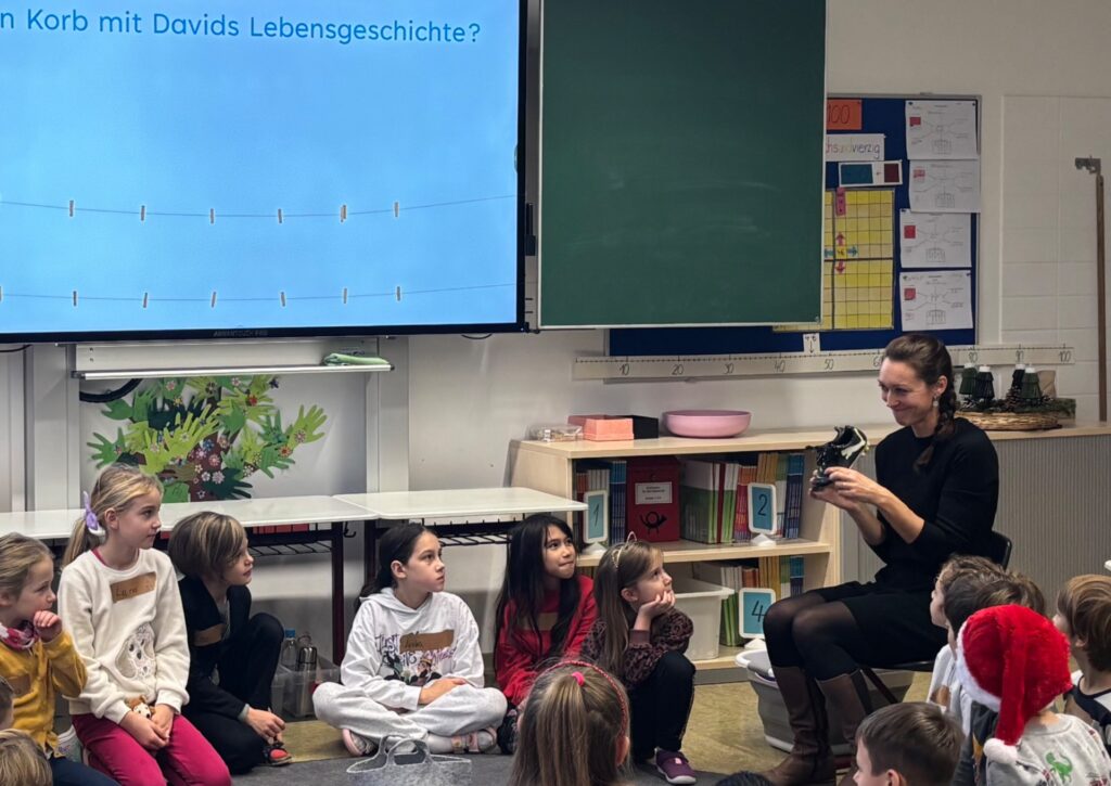 Im Rahmen des geschichtsdidaktischen Seminars „Wann war das denn gleich wieder? – chronologische Orientierung im Geschichtsunterricht vernachlässigt oder vernachlässigbar“ der Universität Regensburg besuchten am 9. Dezember 2025 mehrere Lehramtsstudierende die Klasse 2b. Frau Margareta Turk führte mit den Kindern eine Unterrichtseinheit durch, in der die Kinder erstmals das Thema „Zeitleiste“ kennenlernten. Ausgangspunkt war die Lebensgeschichte eines Kindes aus der Klasse, die von dessen Mutter anschaulich vorgestellt wurde. Gemeinsam wurden wichtige Lebensdaten und besondere Ereignisse gesammelt und anschließend in eine persönliche Lebenszeitleiste eingeordnet. Auf diese Weise lernten die Kinder grundlegende Elemente historischen Arbeitens kennen: Ereignisse in eine zeitliche Abfolge bringen und anhand einer Zeitleiste übersichtlich darstellen. Die Kinder beteiligten sich begeistert und vollzogen einen kindgerechten Einstieg in das Thema Zeit und Geschichte. Wir freuen uns über die gelungene Zusammenarbeit mit der Universität Regensburg und auf weitere gemeinsame Projekte.